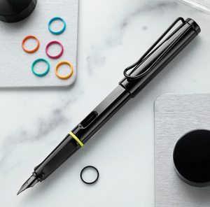 The LAMY Safari is often referred to as a "gateway pen" for those new to the hobby, and for good reason. Its reliability, affordability, and exceptional performance make it a favorite that remains in pen cases long after other entry-level pens are discarded. This special edition All-Black - Multi Ring Set is a collector's item that elevates the classic Safari design to new heights.